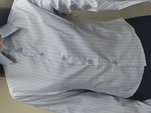 블루줄무늬 은은하고 이뻐요~~ 사이즈도 루즈핏이 아니라서 하의위에 그냥 입어도 괜찮네요~ 기장이 짧은 편이라서 넣어입는 것보다 그냥 빼서 입는게 더 이쁜것같아요~ 좀 얇은편이라서 봄가을용으로 입기 좋고 소재부드럽고 구김 잘 안갈것같아서 맘에 들어요 같이 구입한 회색 자켓안에 입어보니 완전 딱이네요~~ 신축성없어도 불편하지않고, 딱 잘맞아서 좋아요