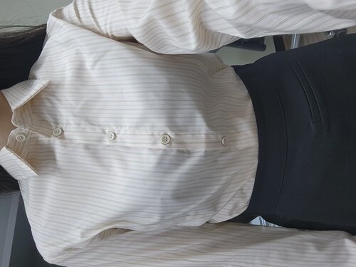 실물로 봤을 때 더욱 만족감이 높은 셔츠 입니다. 구김이 안가는 재질 인계 가장 마음에 들었고 55 사이즈.인저에게도 잘 맞는 셔츠였어요. 가디건이랑 같이 입어주니까 정말 예쁘더라구요.